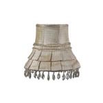 Striking Color! Ivory dupioni silk creates a pleated skirt crowned with lines of clear beads on the sweet chandelier shade. The base of the shade is surrounded in dangling green beads. Take a peek at our chandeliers to coordinate with our chandelier shades and our chandelier medallions to create a...