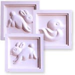 Distressed Finish Nursery Trio Set Our adorable Nursery Trio Sets are the perfect addition for your posh tot’s nursery. Two bunny plaques on either side of a baby duck plaque. Cast in plaster from Marie Ricci’s hand carved original. Hand painted in your choice of 18 designer colors. Pink, powder...