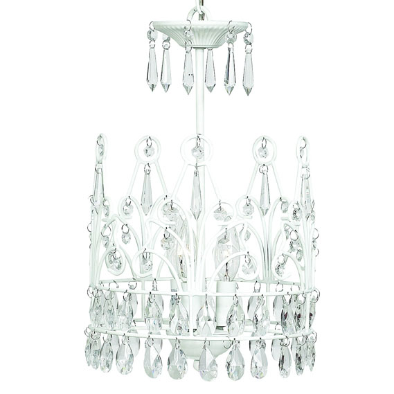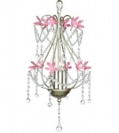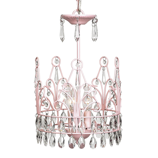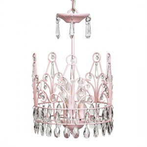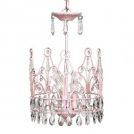 This 3-light pink crown chandelier is dripping in crystals though the crown up to the top.