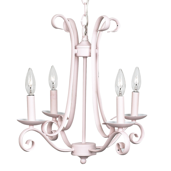 4 arm Harp Chandelier in pink.