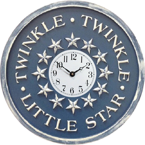 Twinkle Twinkle Little Star Design Children’s Wall Clock cast from Marie Ricci’s hand carved original.